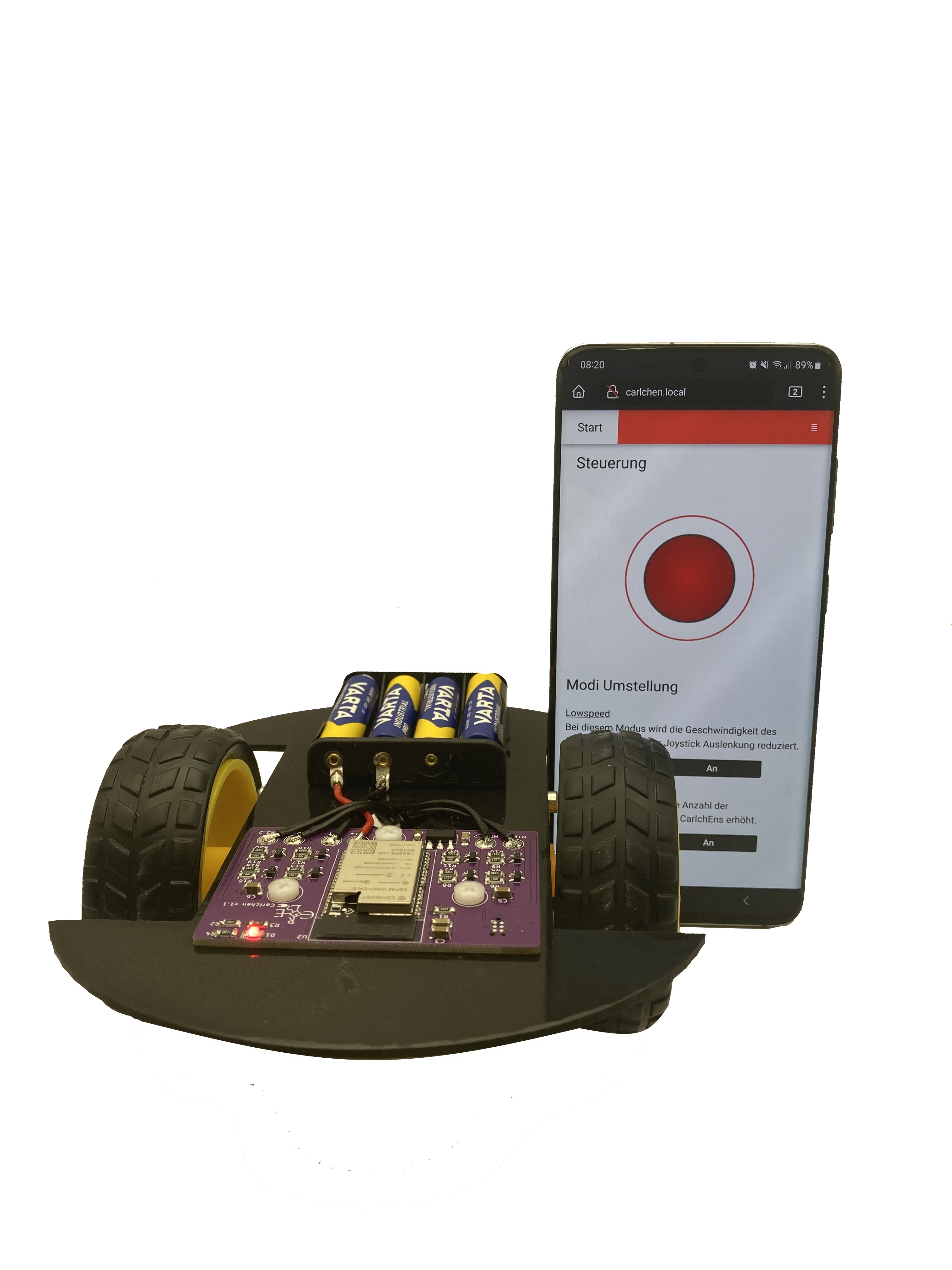 Du möchtest "CarlchEn" kennenlernen, unser selbstgebautes Fahrzeug, welches über das Handy steuerbar ist?